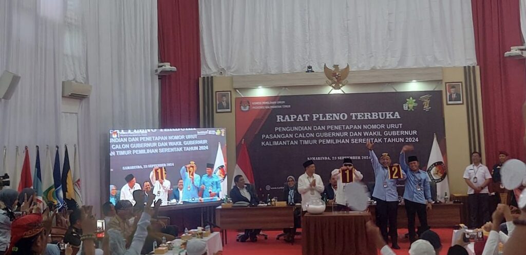 Pada saat pengundian, Isran noor – Hadi Mulyadi mendapatkan nomor urut 1, sedangkan Rudy Mas’ud – Seno Aji mendapatkan nomor urut 2. Komisioner KPU Kaltim kemudian menandatangani berita acara rapat pleno terbuka terkait pengundian dan penetapan nomor urut paslon Gubernur dan Wakil Gubernur Kaltim Pilkada tahun 2024.