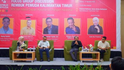 Portalikn.id – Balikpapan, 12 Agustus 2025 – Rembuk Pemuda Kalimantan Timur menyelenggarakan Focus Group Discussion (FGD) dengan tema “IKN dan Masa Depan Ketahanan Pangan Nasional” di Swiss-Belinn Balikpapan. Diskusi ini bertujuan untuk menggali tantangan dan solusi terkait pengembangan Ibu Kota Negara (IKN) baru sambil menjamin ketahanan pangan di Kalimantan Timur. Acara ini dihadiri oleh berbagai pemangku kepentingan, mulai dari akademisi, politisi, aktivis lingkungan, hingga komunitas pemuda serta perwakilan sektor pariwisata.